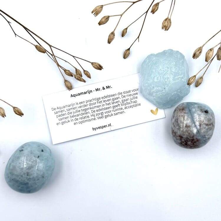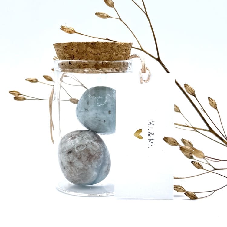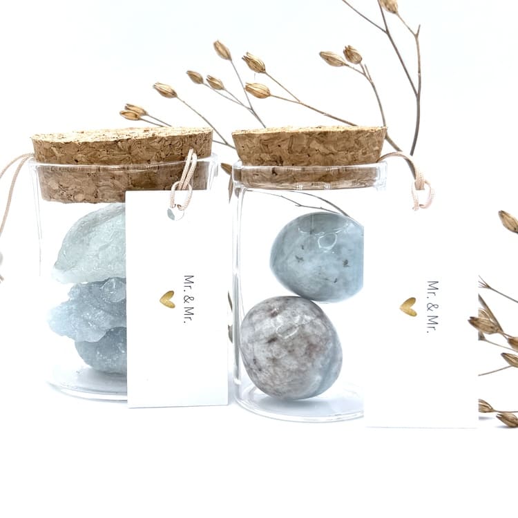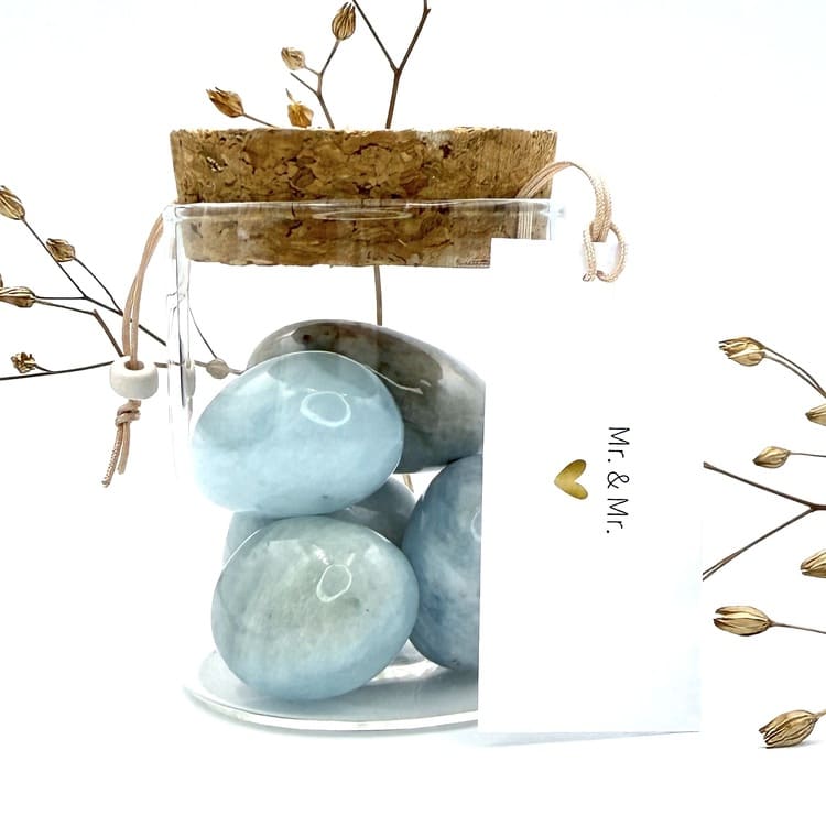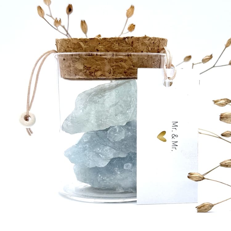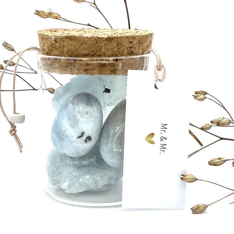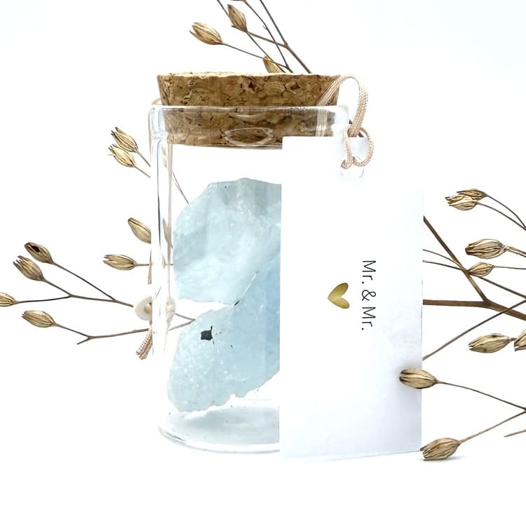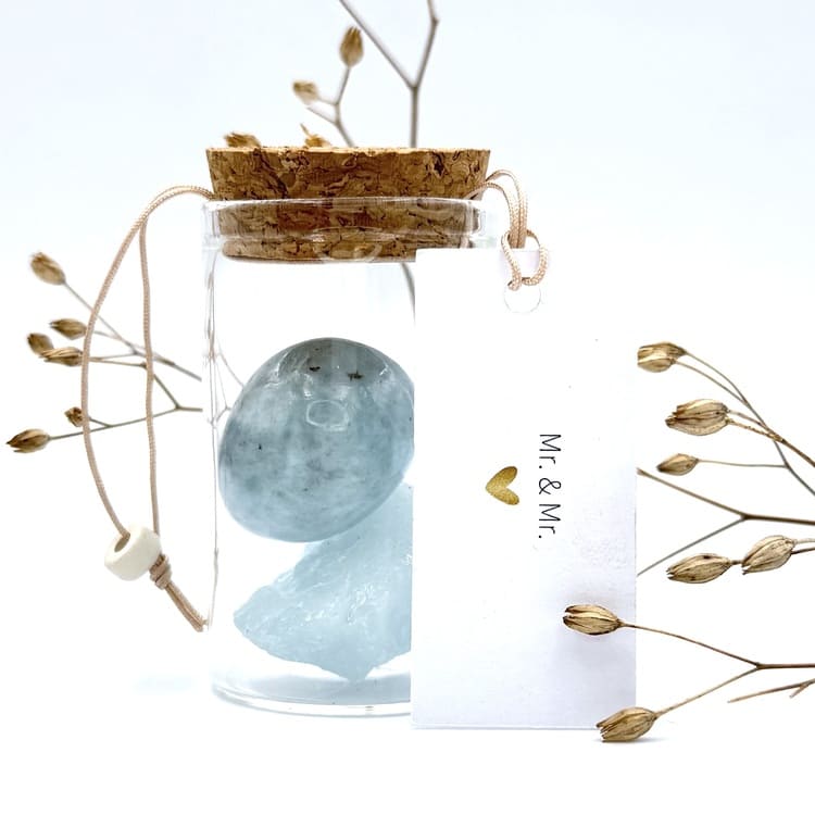 Vier de liefde met het potje “Mr. & Mr.”, gevuld met de edelsteen Aquamarijn – de steen van verbondenheid en harmonie. Een prachtig symbool voor samen verder gaan, het delen van geluk en het bewandelen van nieuwe paden met elkaar.
