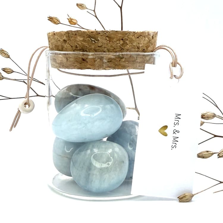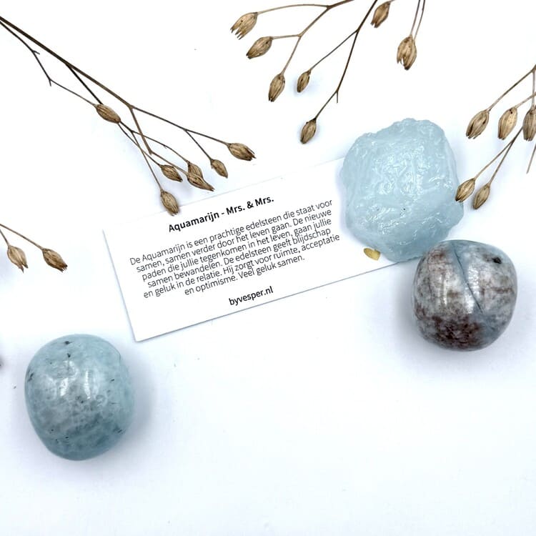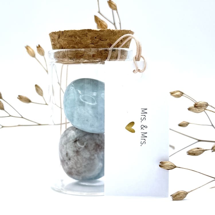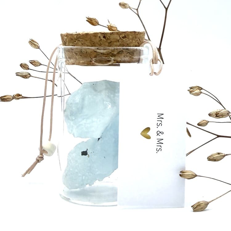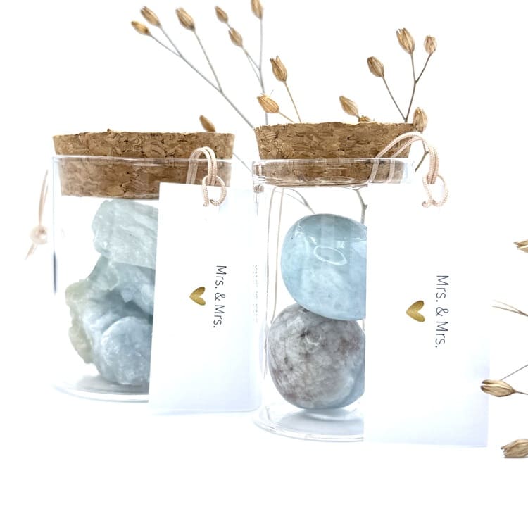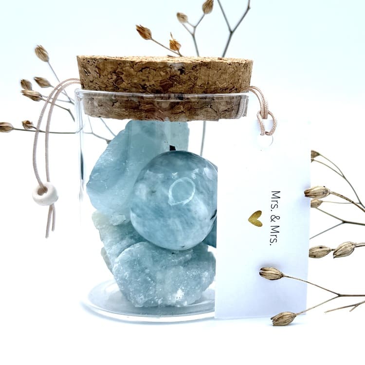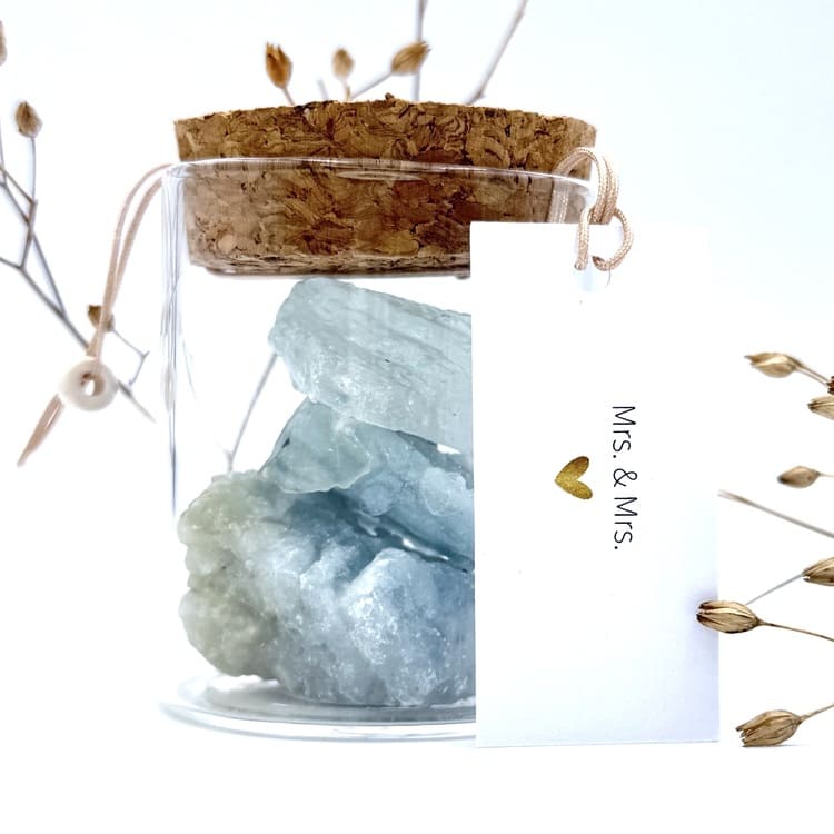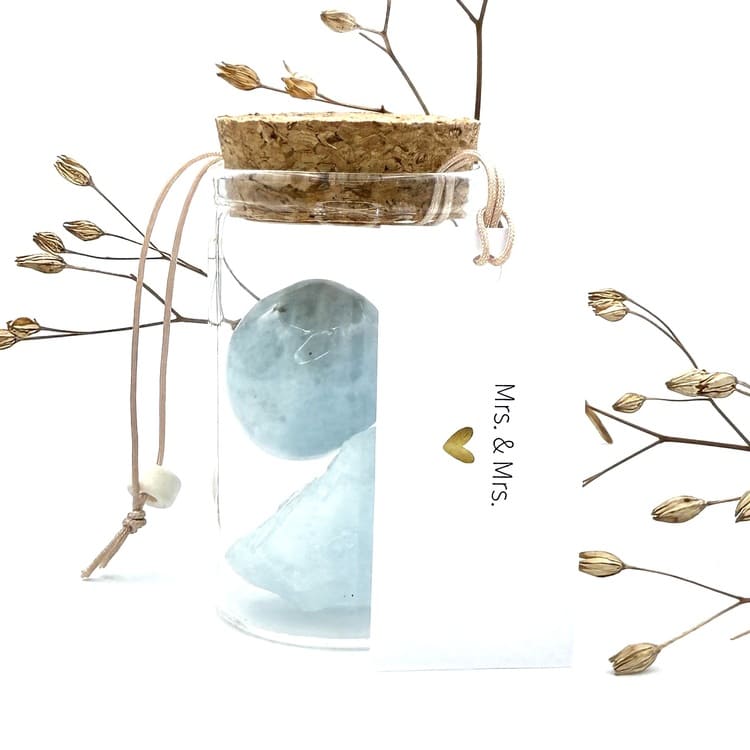 Vier de liefde met het potje “Mrs. & Mrs.”, gevuld met de edelsteen Aquamarijn – de steen van verbondenheid en harmonie. Een prachtig symbool voor samen verder gaan, het delen van geluk en het bewandelen van nieuwe paden met elkaar.