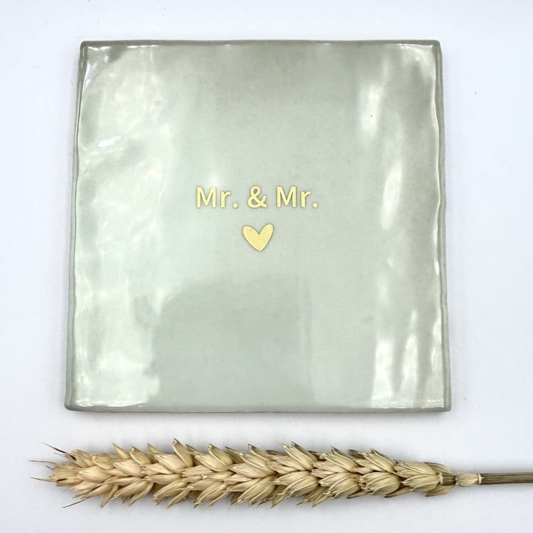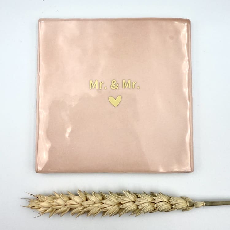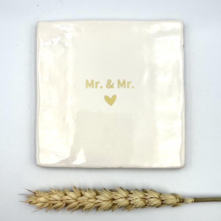 Vier de liefde met dit stijlvolle keramieken tegeltje met de tekst “Mr. & Mr.”. Een prachtig symbool voor verbondenheid en geluk. Het tegeltje heeft een afmeting van 10 x 10 cm en is verkrijgbaar in drie zachte tinten: offwhite, poederroze en groen.